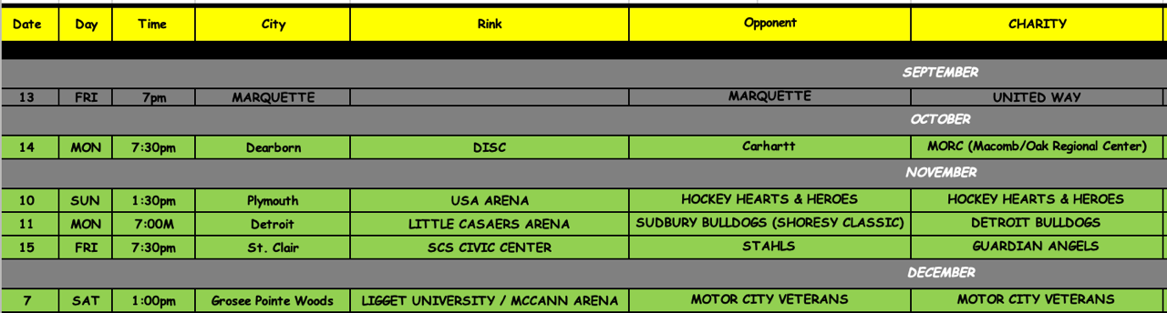 The Detroit Red Wings alumni association is responsible for growing the game and supporting various charities across Michigan. Below is a schedule of upcoming events and charitable opportunities